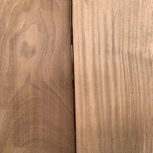 非洲核桃木因其紋理美觀、質(zhì)地堅(jiān)硬且易于加工,常被用于高檔家具、地板、樂器以及裝飾面板的制作。核桃木普遍適用于家具、櫥柜、工藝品。核桃木心材通常淺黃褐色至褐色,顏色和條紋通常隨產(chǎn)地不同而有所變化。通常核桃木是灰褐色的,帶有明顯的深色或黑色條紋,其顏色隨著時(shí)間的流逝會(huì)變淡。心材部分通常呈現(xiàn)淺紅褐色至棕褐色,略帶紫色的色調(diào),使得整個(gè)木材色澤既悅目又雅致,偶爾還能發(fā)現(xiàn)美麗的斑點(diǎn)或條紋。相較之下,邊材的顏色則較為淺淡,多以灰白色或淺褐色為主。樹根、癭瘤等部位常展現(xiàn)出獨(dú)特且美麗的花紋,若將其精心鋸成薄木片,那將是一種極具價(jià)值的裝飾材料。此外,核桃木的硬度適中至略硬重,其纖維結(jié)構(gòu)細(xì)膩且均勻,展現(xiàn)出強(qiáng)大的韌性,特別是在抗震動(dòng)和抗磨損方面,其性能尤為出色。同時(shí),它還具備一定的耐彎曲和耐腐蝕性。